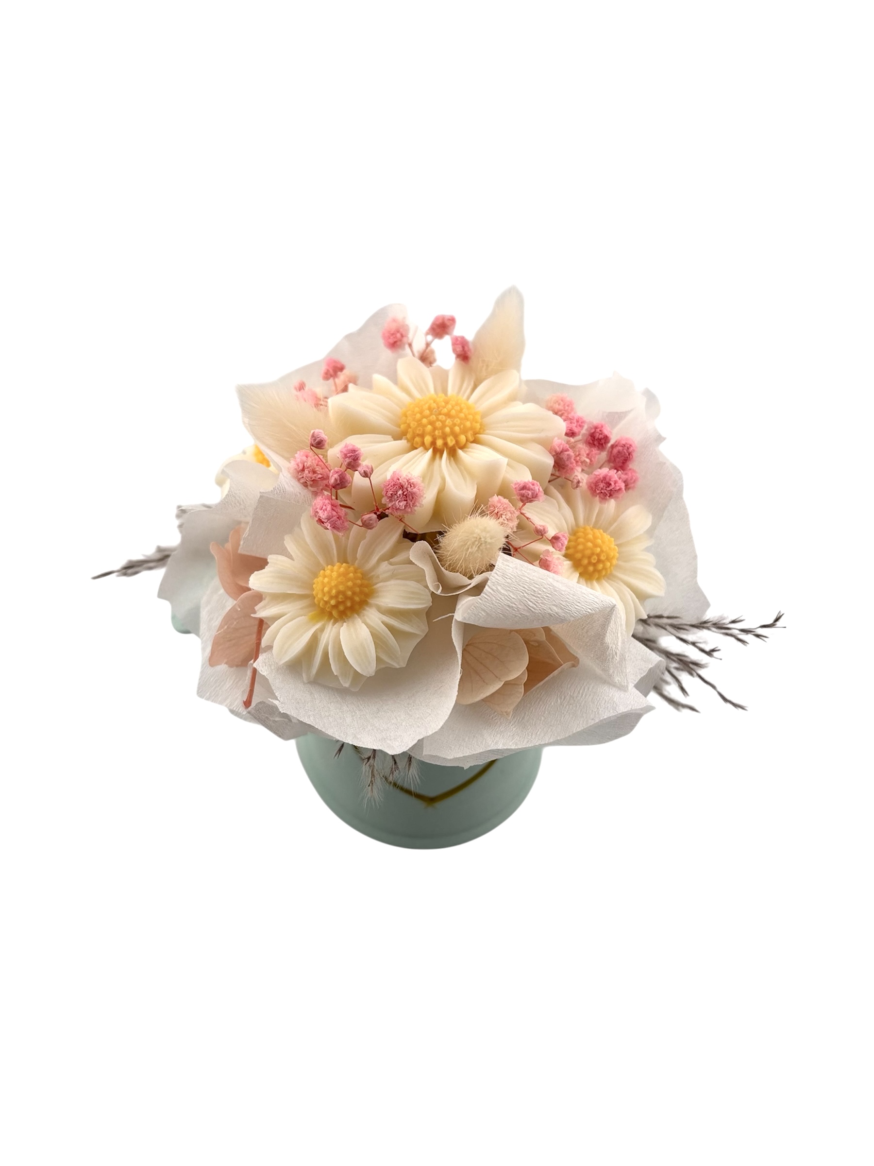 Cire de soja : environ 60g, colorant jaune, parfum fleur de coton