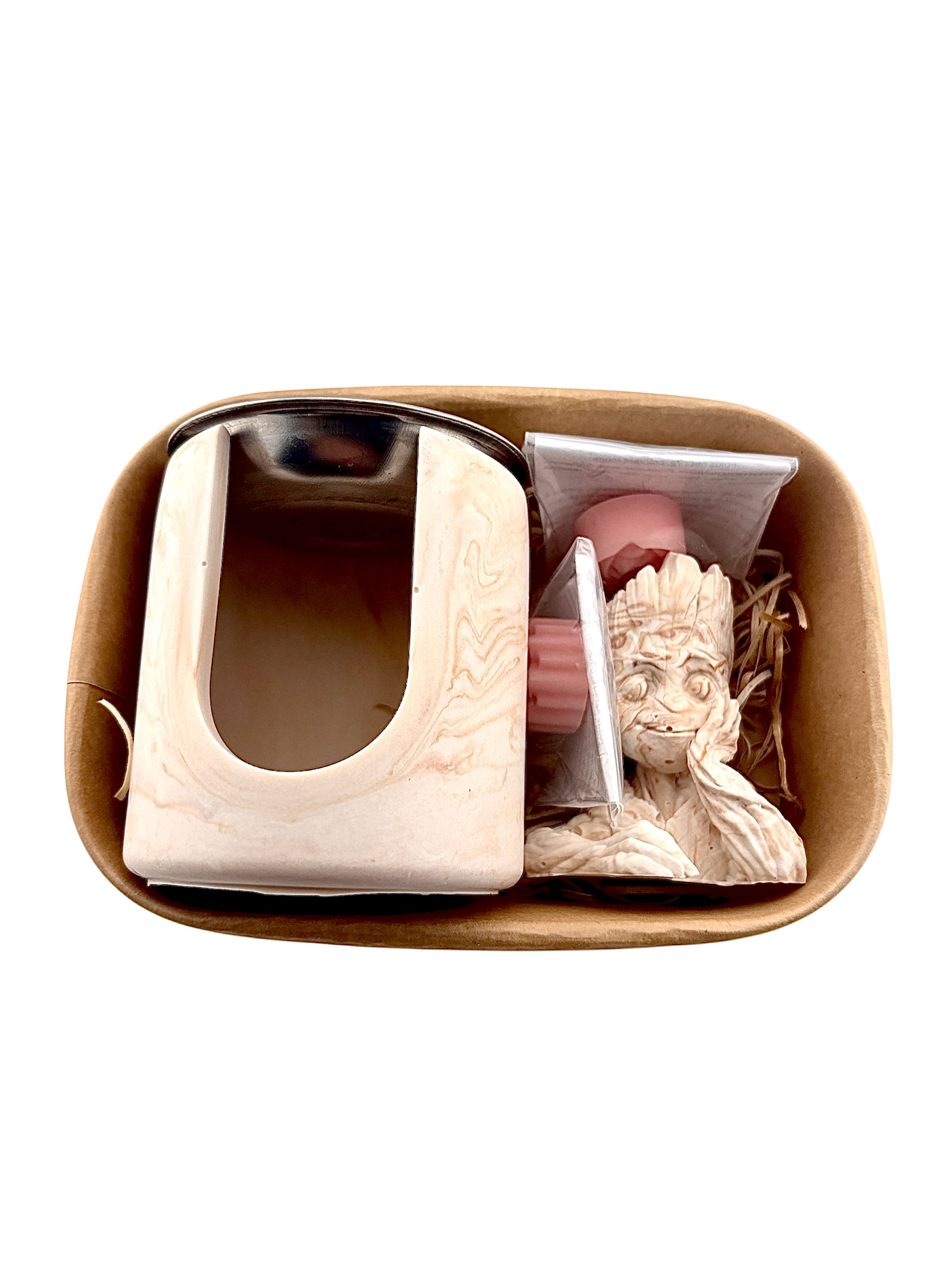 Cire de soja (deux fondants parfum fraise environ 15g au total), colorant rouge