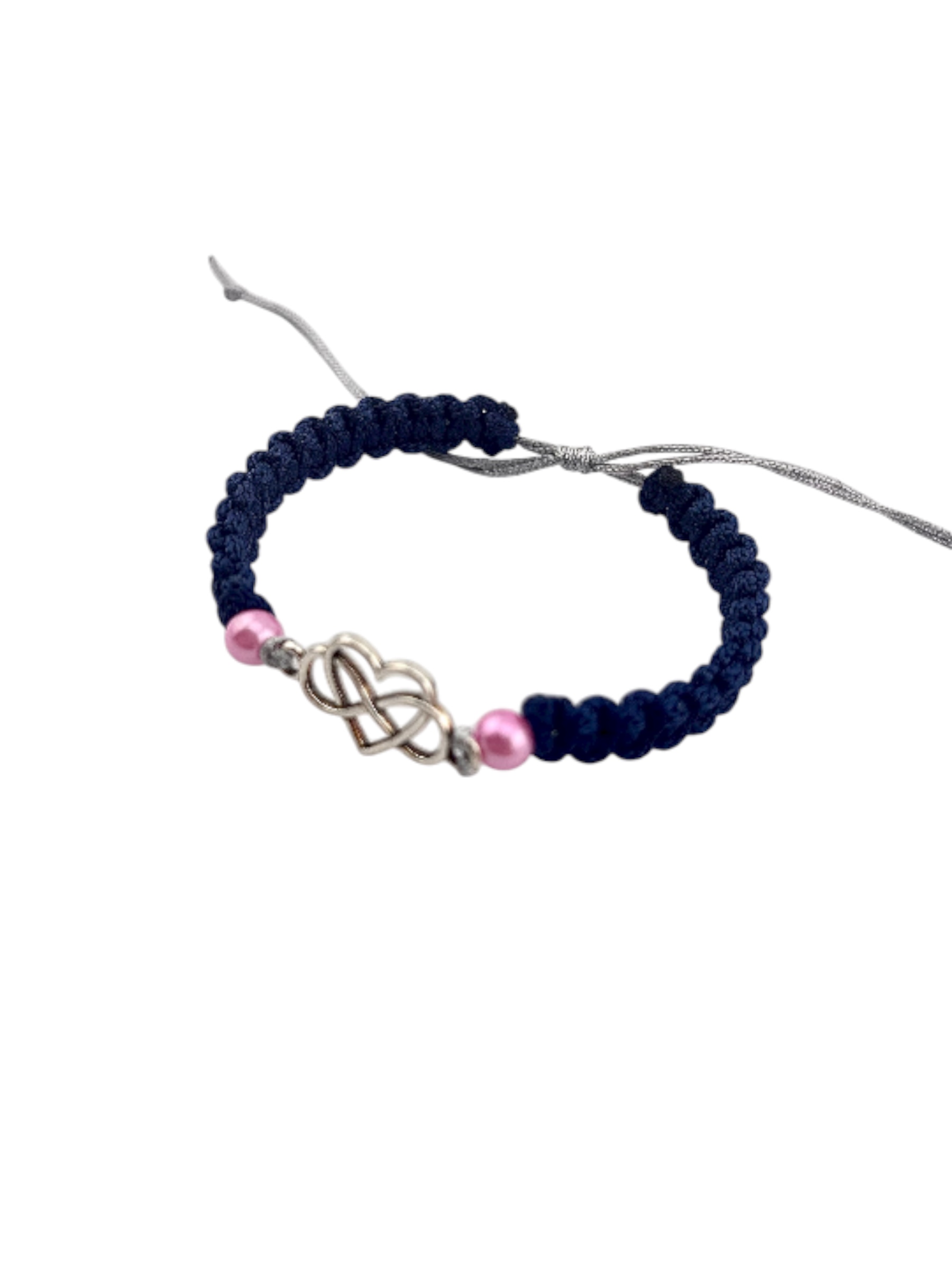 • Bracelet tressé à la main (macramé bleu marine – non modifiable).