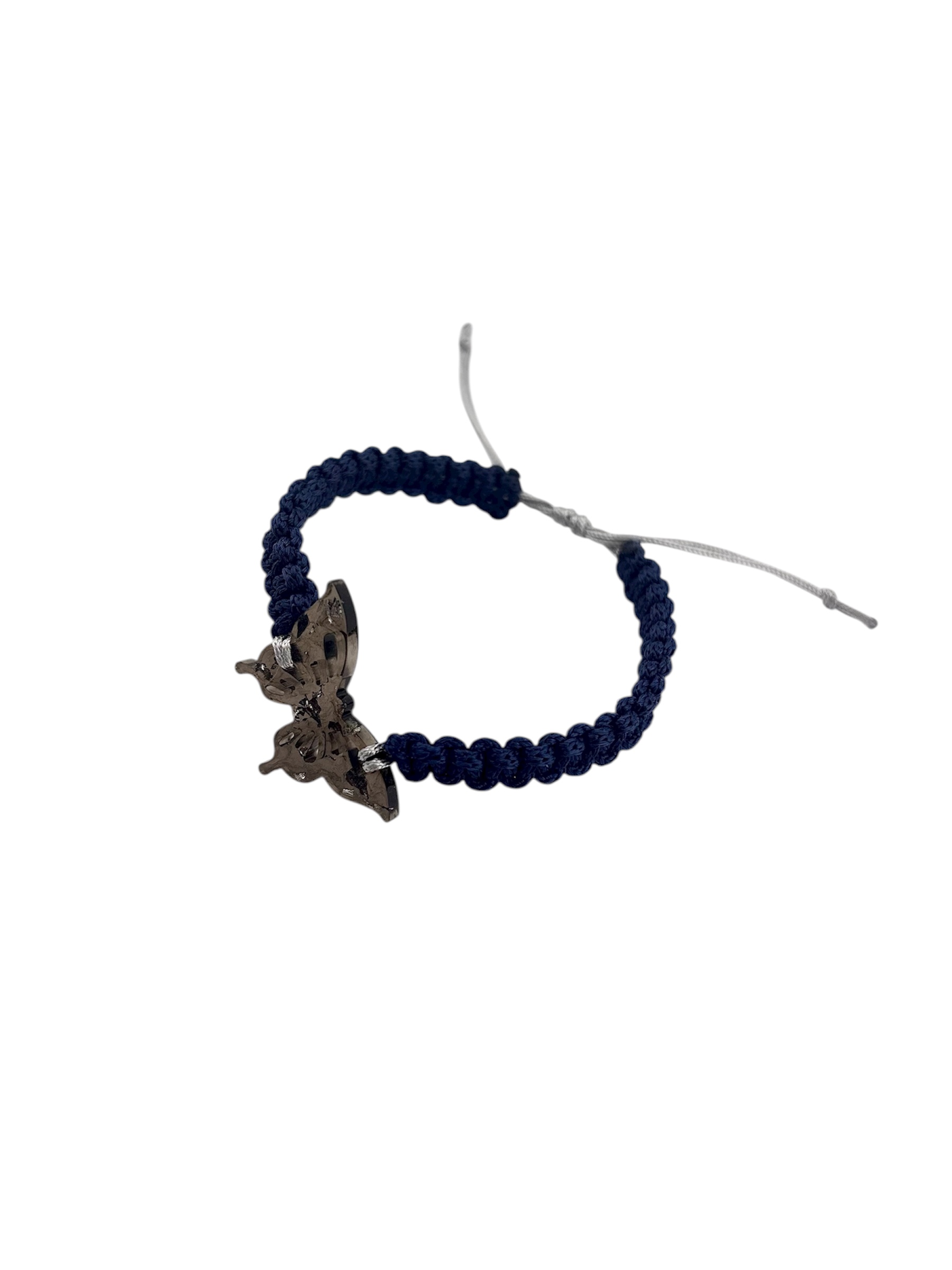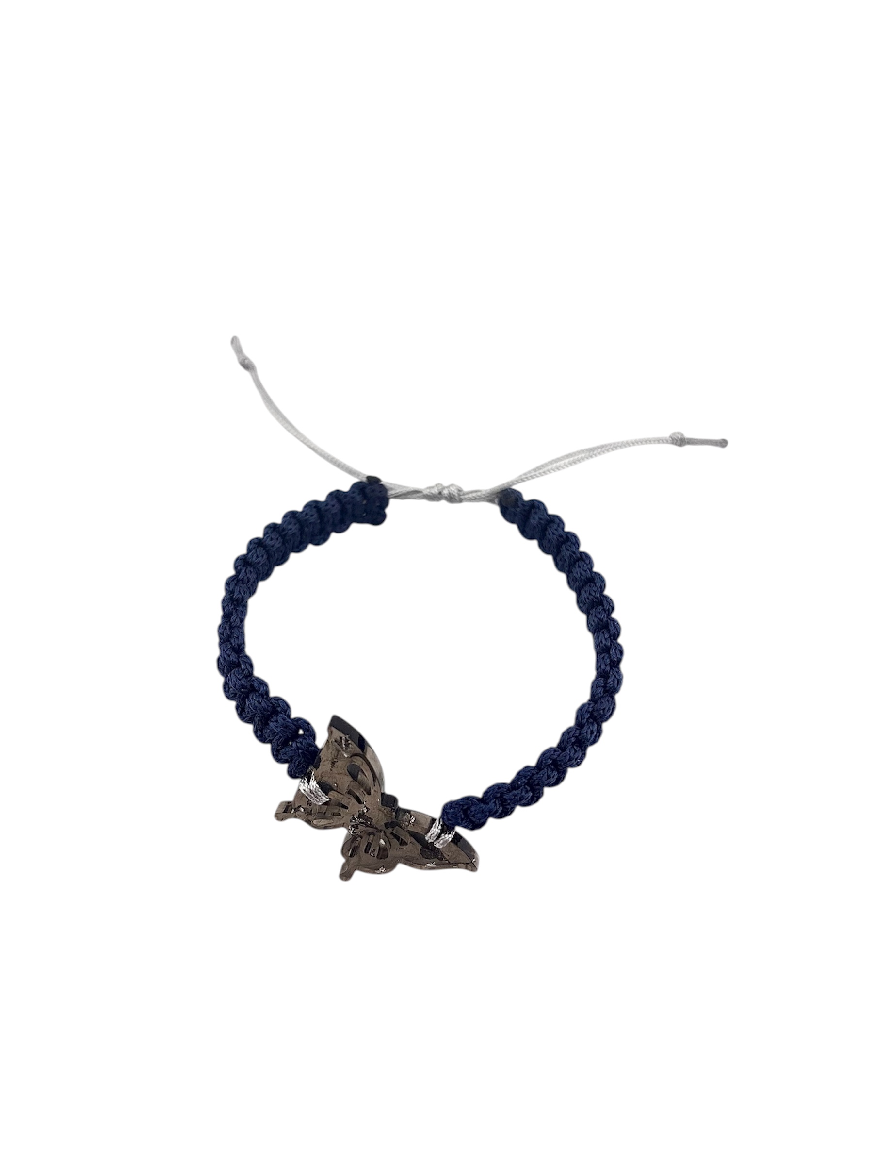 • Bracelet tressé à la main (macramé bleu marine – non modifiable).