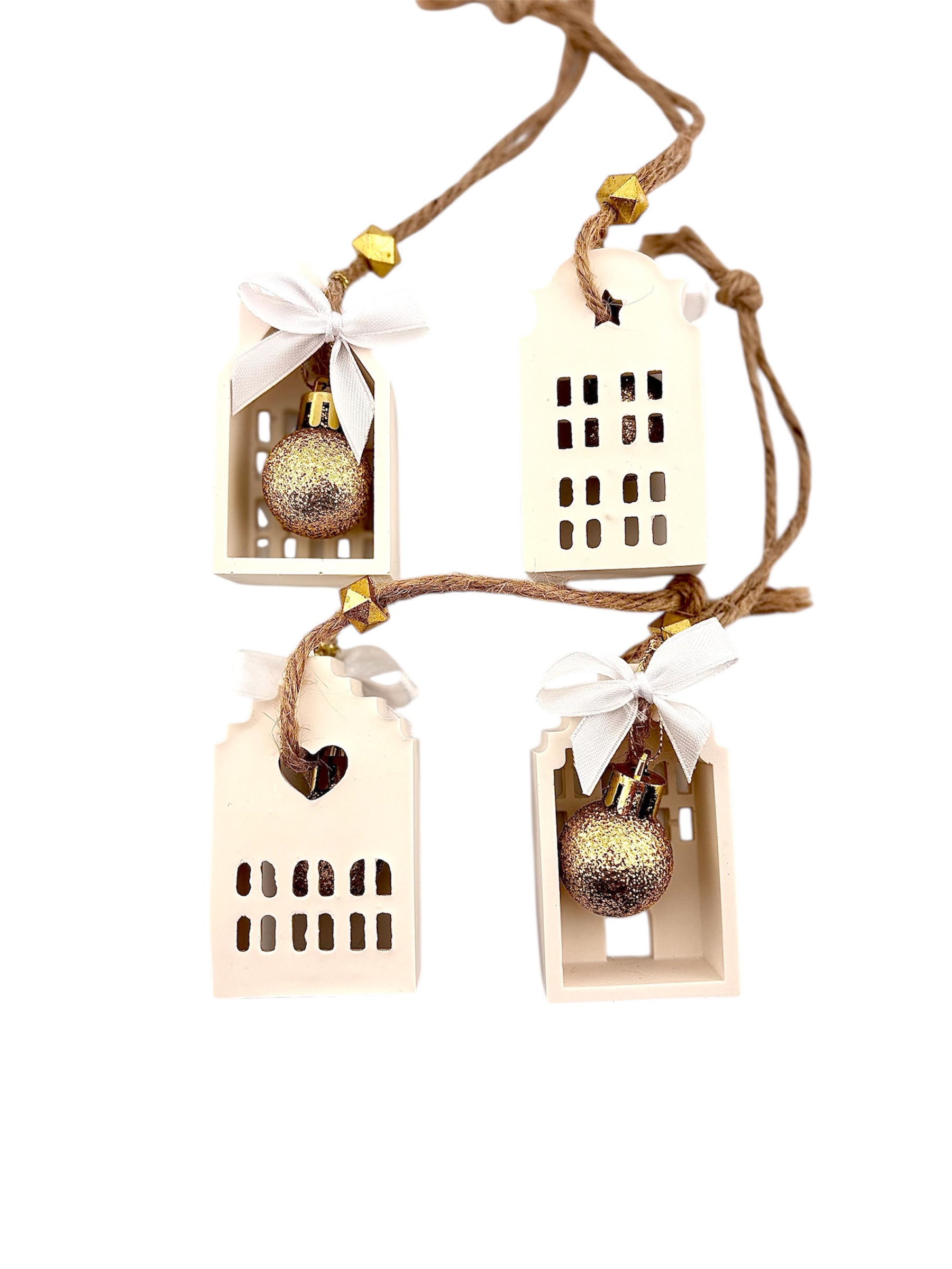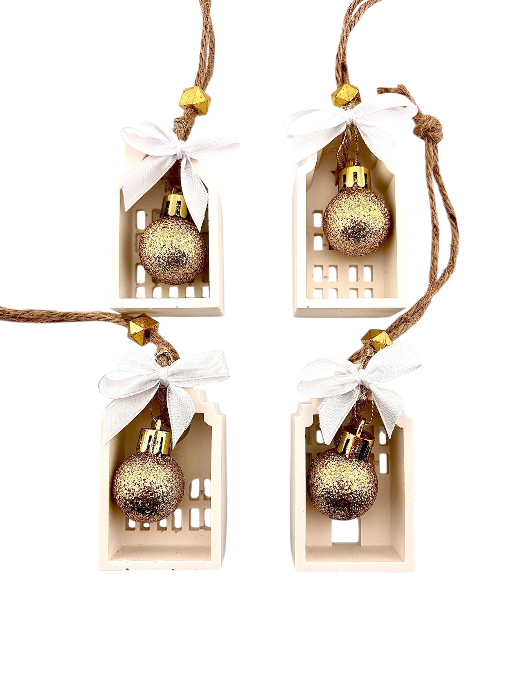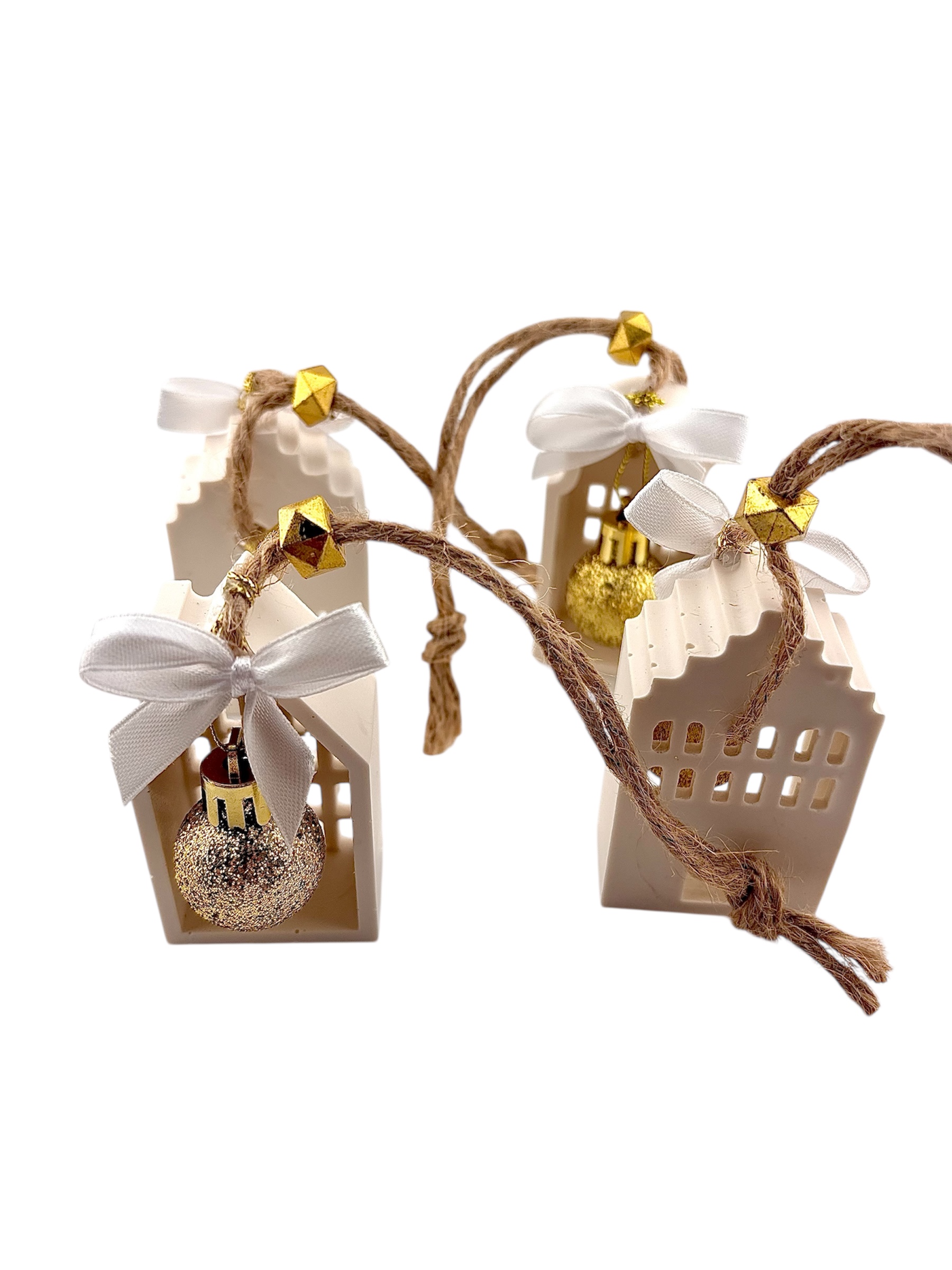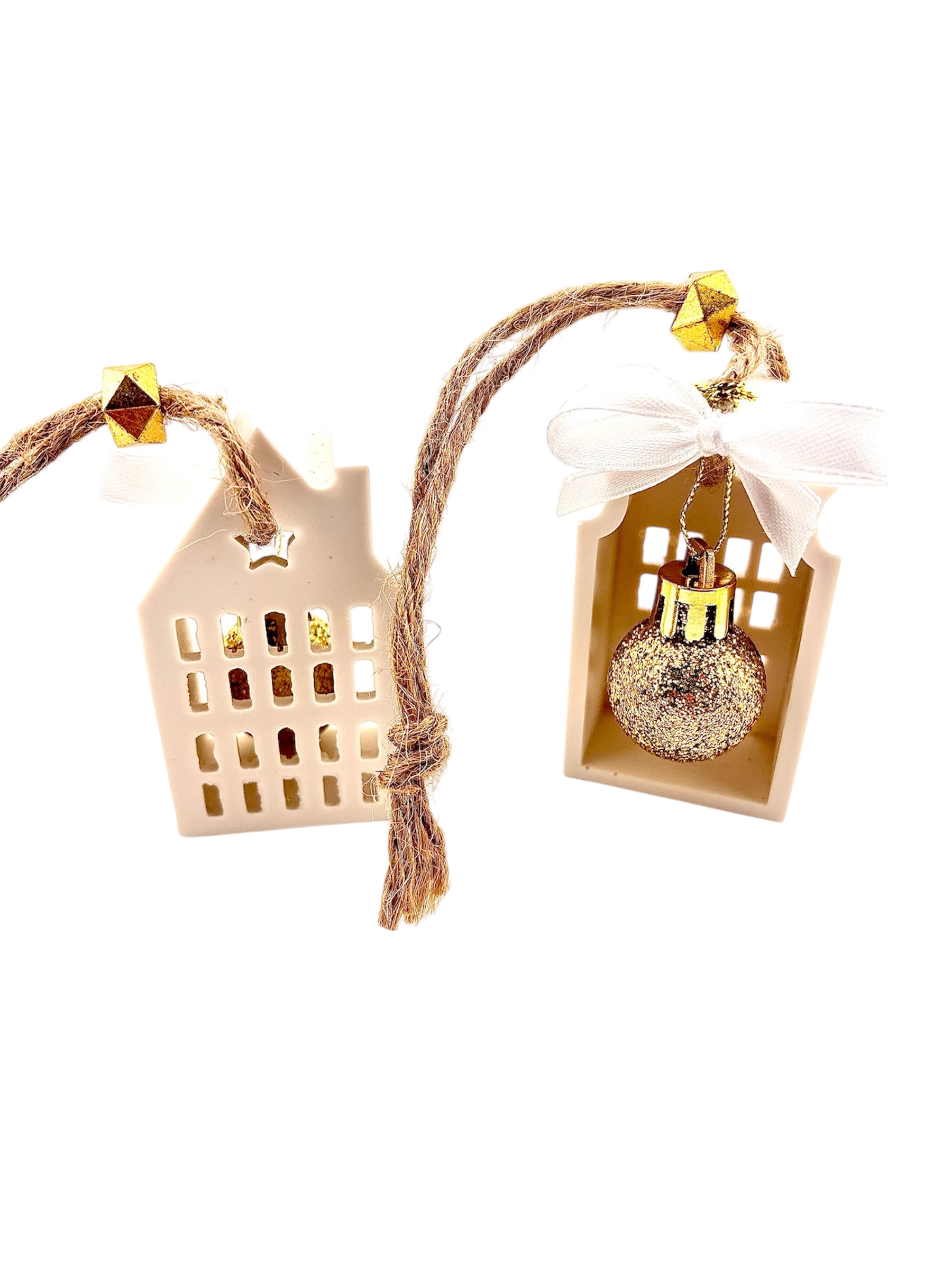 - Suspendez vos décorations en Jesmonite à l’aide de leur jolie corde naturelle, sur le sapin, une couronne, ou une guirlande murale.