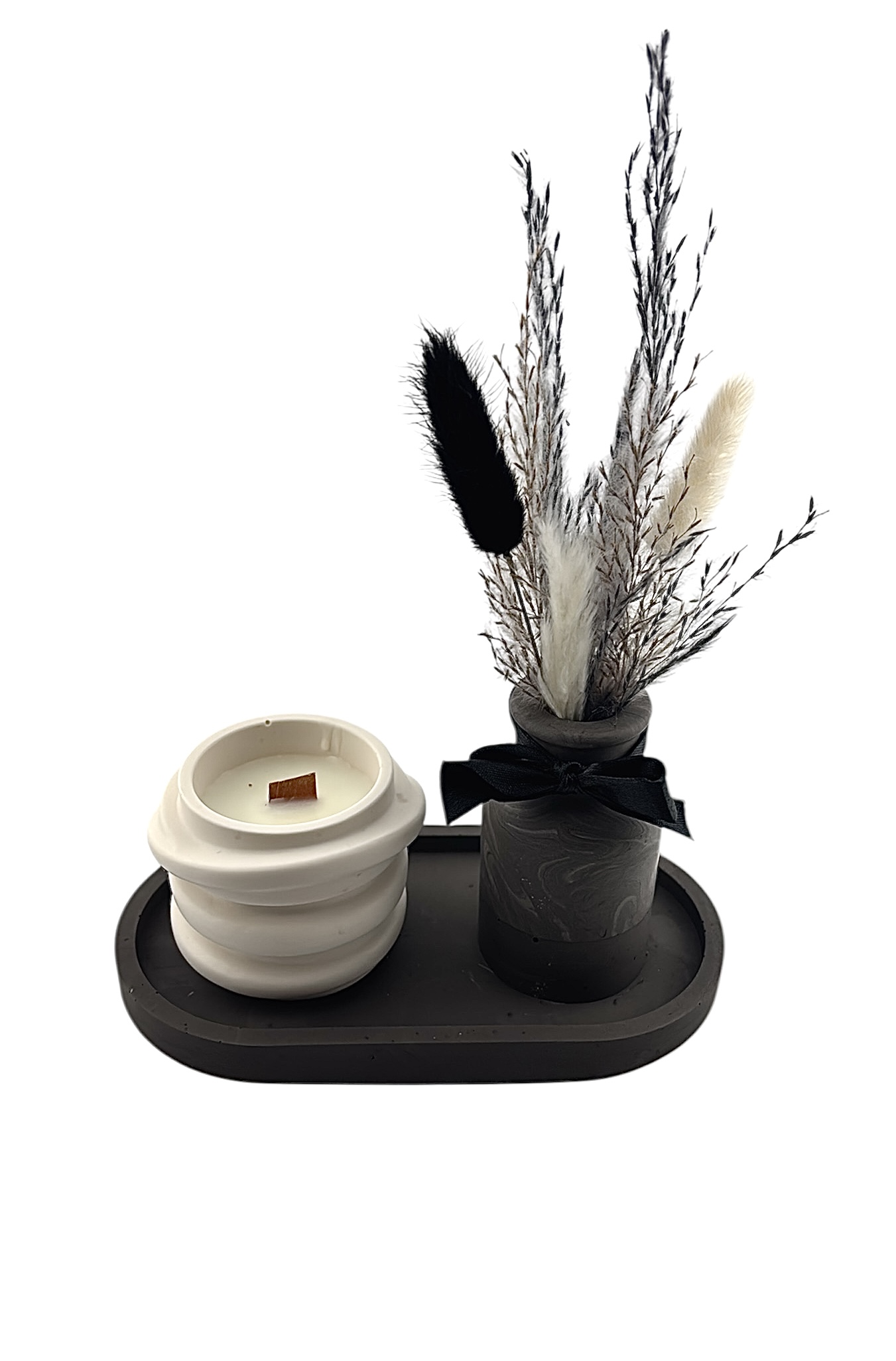 Ensemble décoratif en Jesmonite – Noir et Blanc – Parfum éclat de noisette